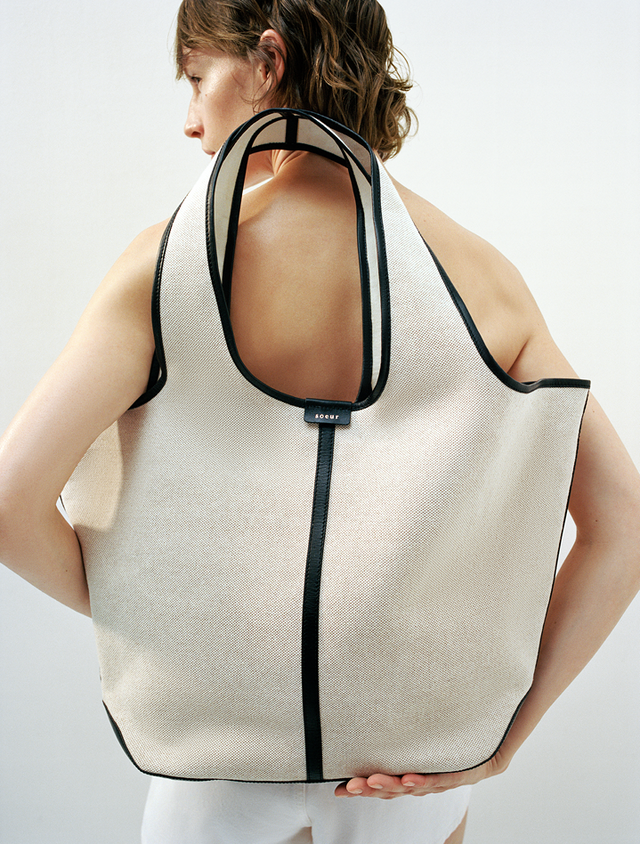A summer canvas and an urban leather together on the same bag: an undeniable classic as perfect for the city as it is on the beach.