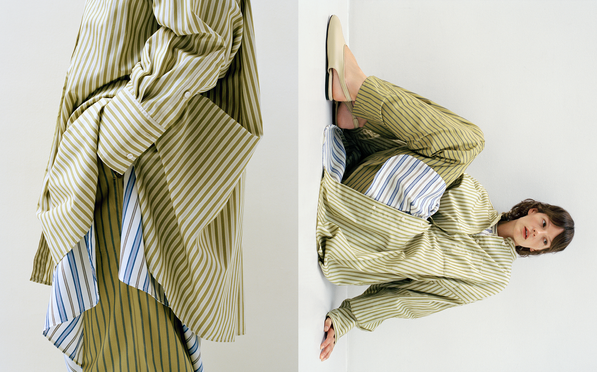 Borrowed from the male wardrobe, striped poplin undergoes a Soeur interpretation. The rhythm of their lines and chosen colours make our stripes exclusive to us.