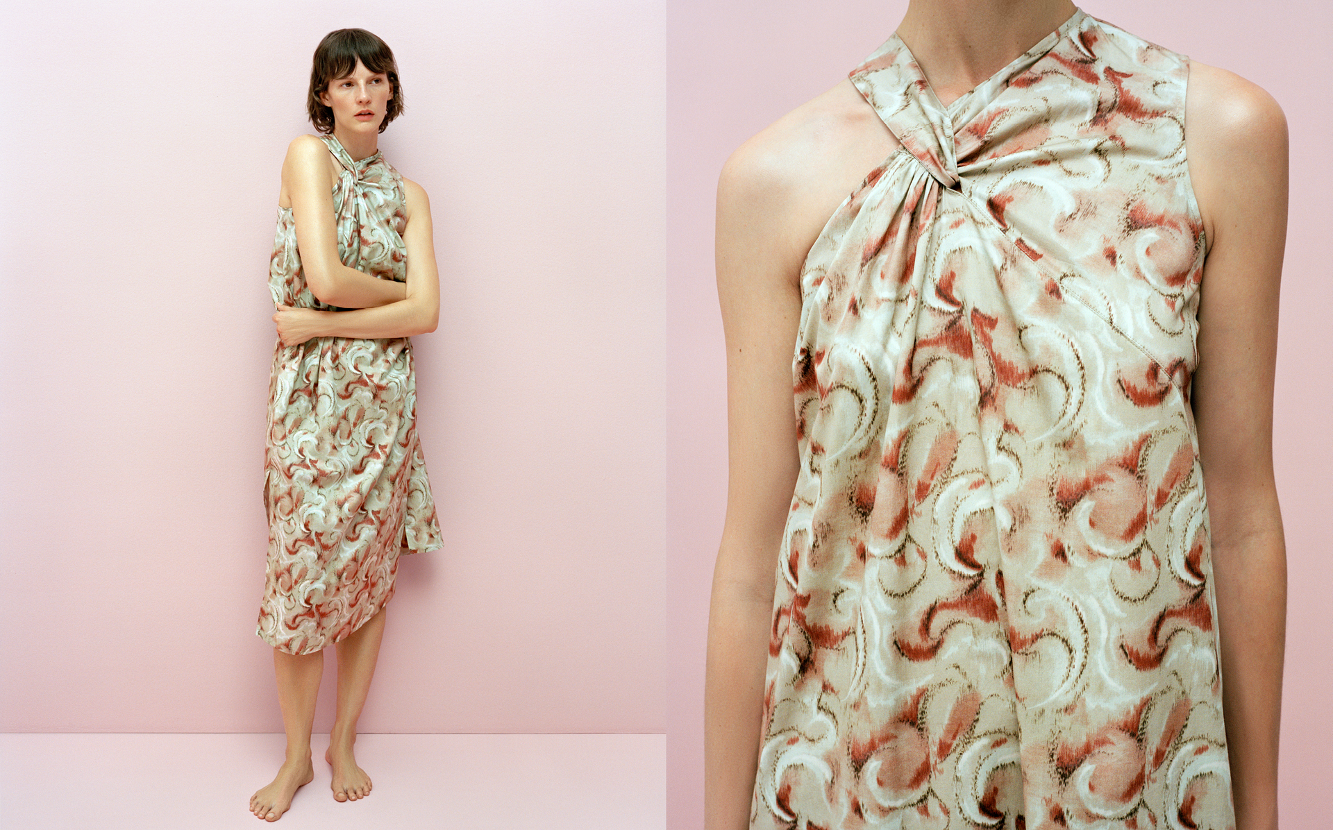 Beautiful shoulder-baring asymmetry, an eye-catching interplay of motifs and pastels: the dress for a dream summer.