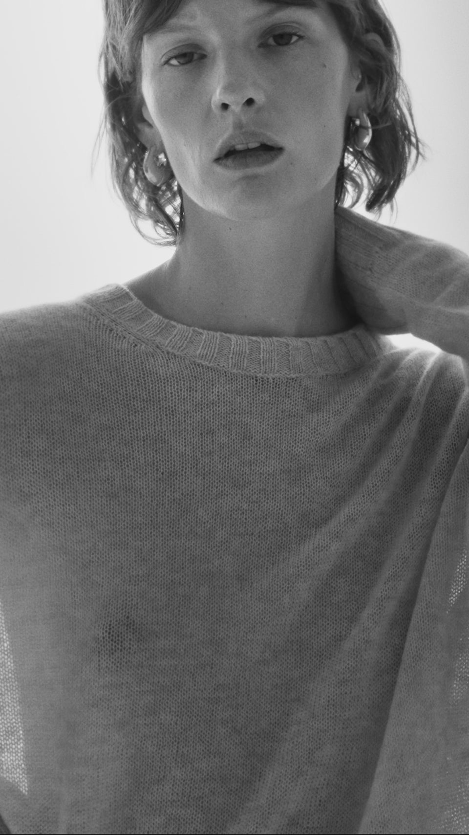 Summer knitwear revisited. A self-assured baring of skin or worn simply with a white poplin shirt, as desired.