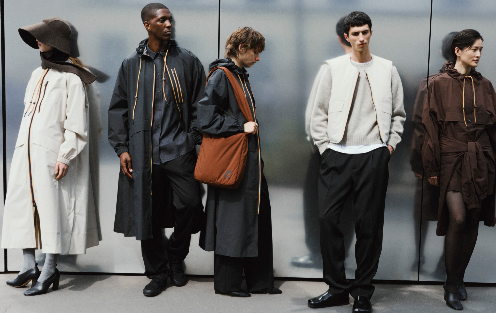 it : the Wes reversible sleeveless waistcoat, the Murray short hooded jacket with a front pocket like a pea coat, the Tuesday bag and the Sienne bucket hat. An everyday wardrobe characterised by clean lines, supple technical fabrics and a subtle colour palette.