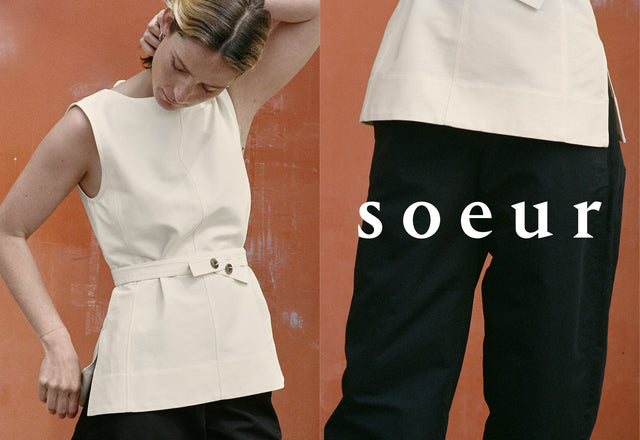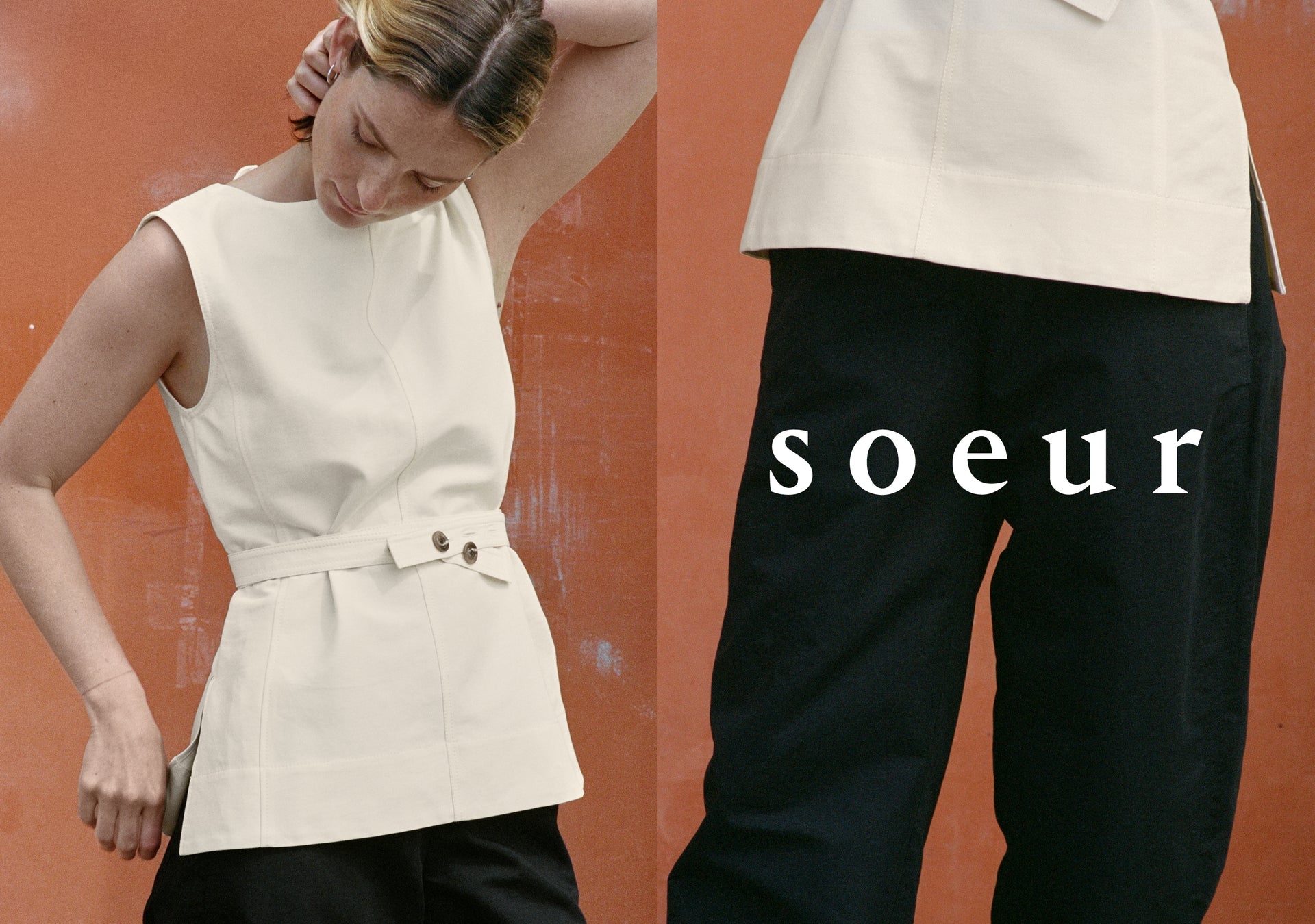 The collection is a blend of materials, colours and desires. The watchword is lightness. Conveyed through pants, structured tops and other ensembles with characteristically Soeur cuts ideal for city and seaside alike. Where pleasant strolls last and winter is held back.