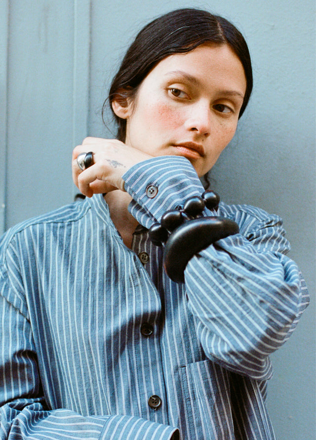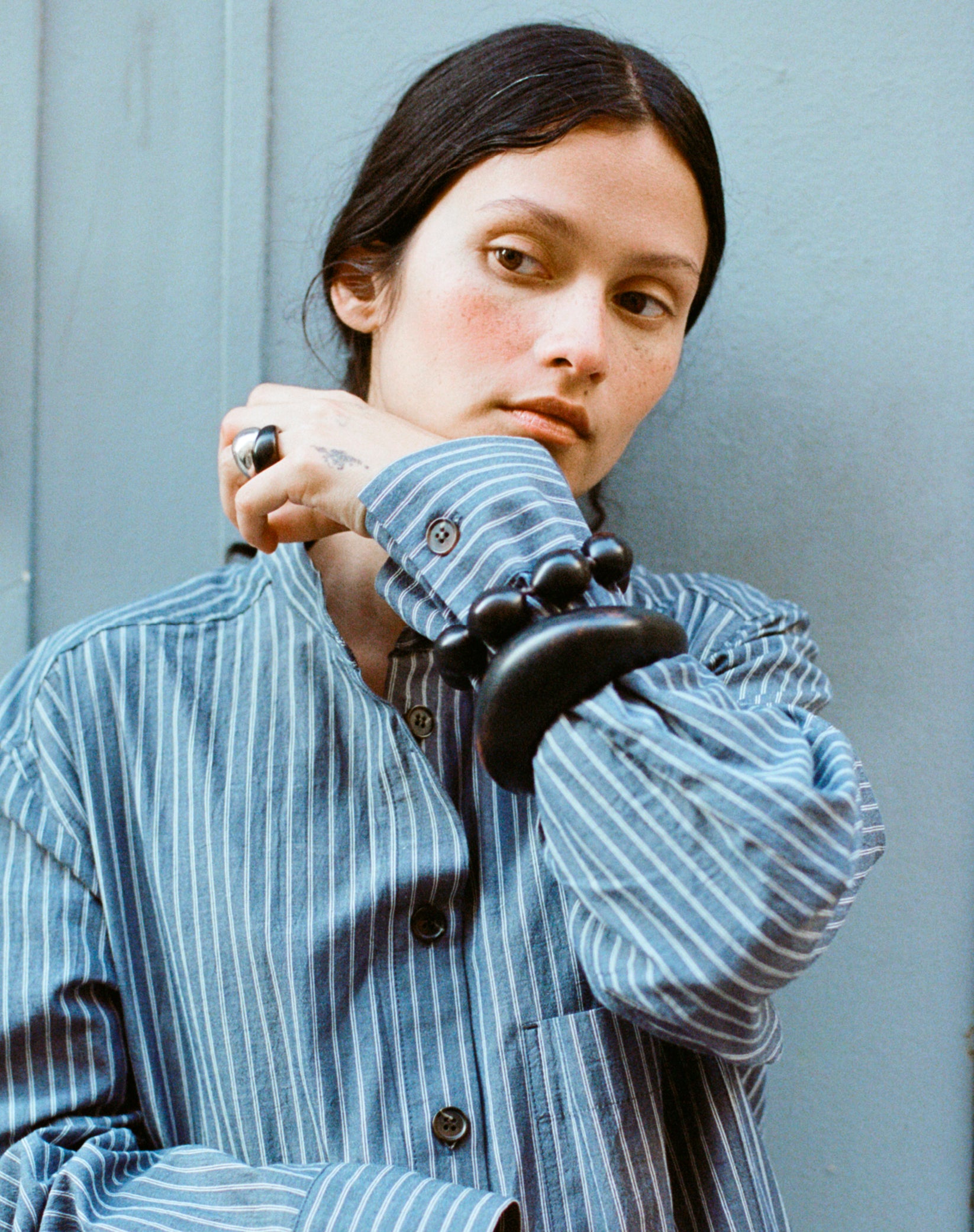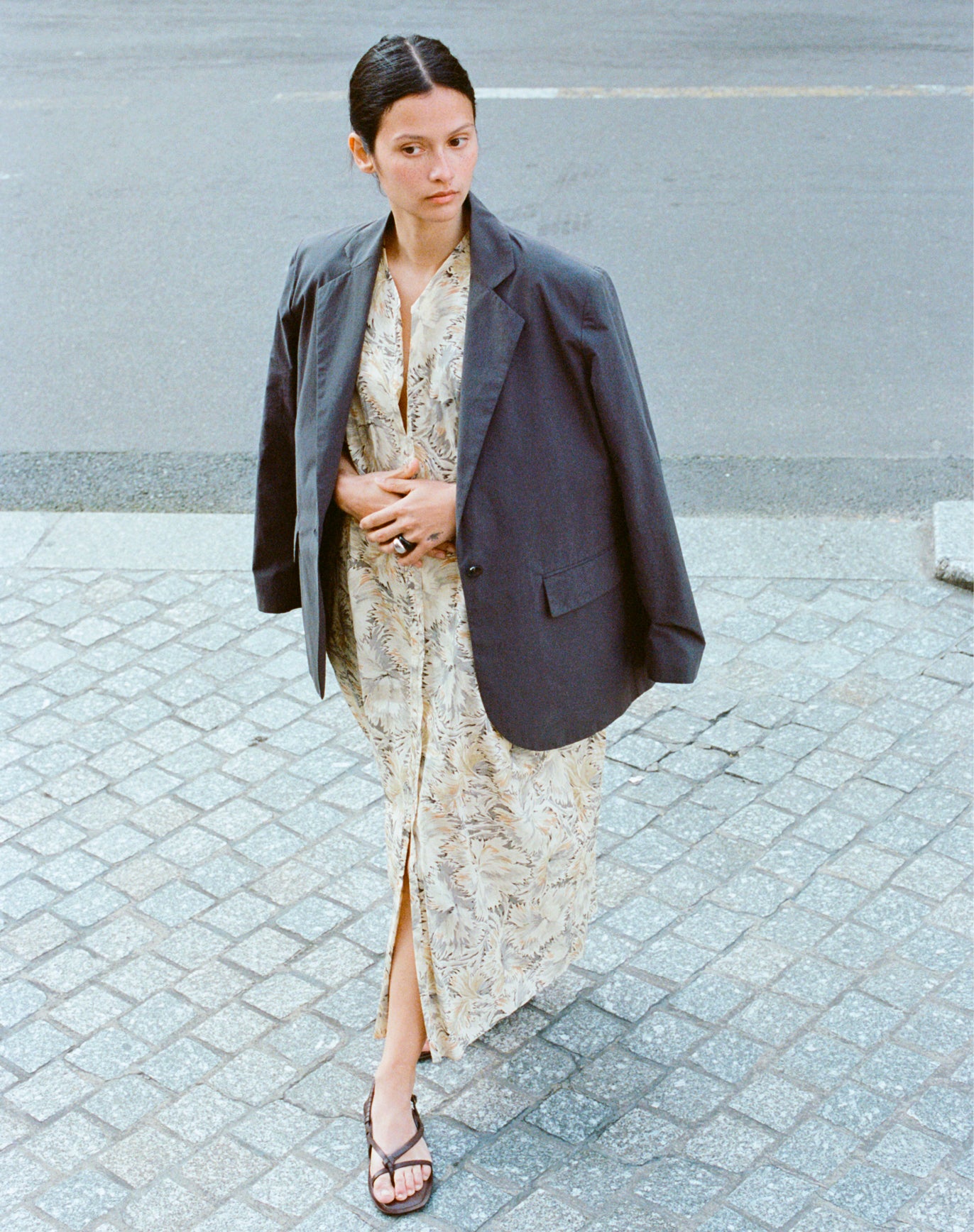 Sometimes layered over trousers or under a blazer for a more masculine effect.