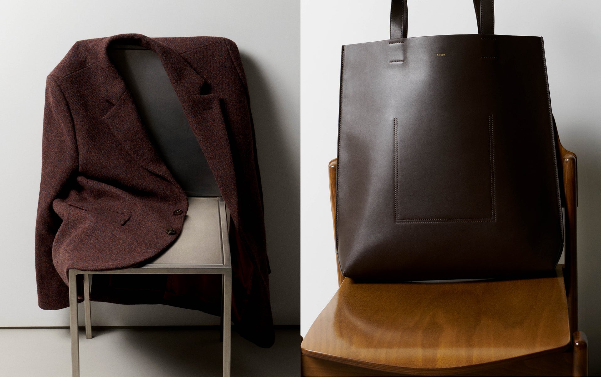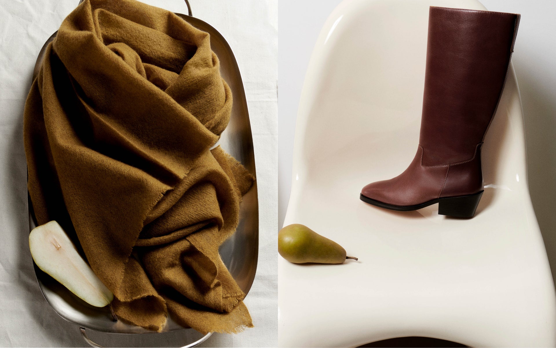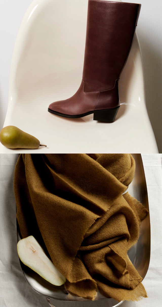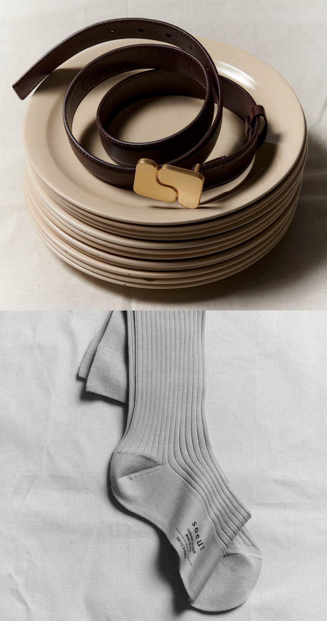 A bag crafted in a single large piece of leather, a silk square available in a palette of colors, an iconic jacket in Harris Tweed, and a range of long socks in mercerized cotton thread. A seasonal wishlist.