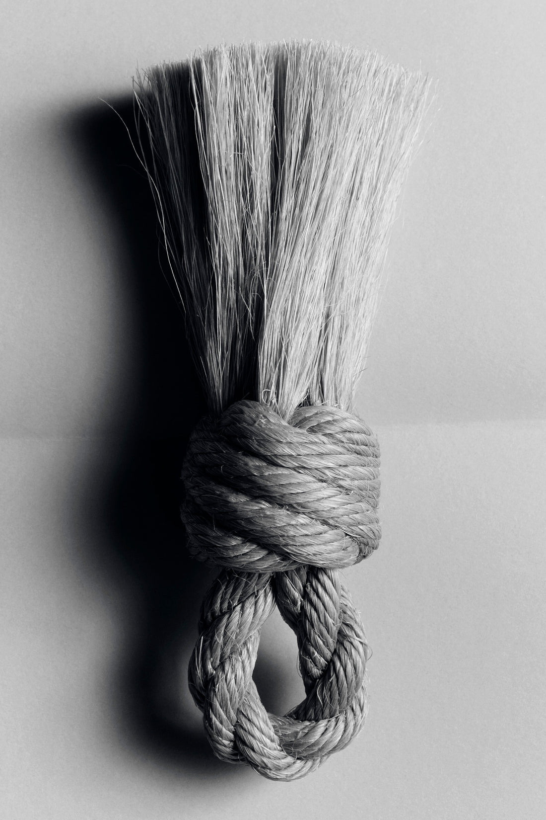 This brush is made of rope with a traditional star-shaped sailor's knot.